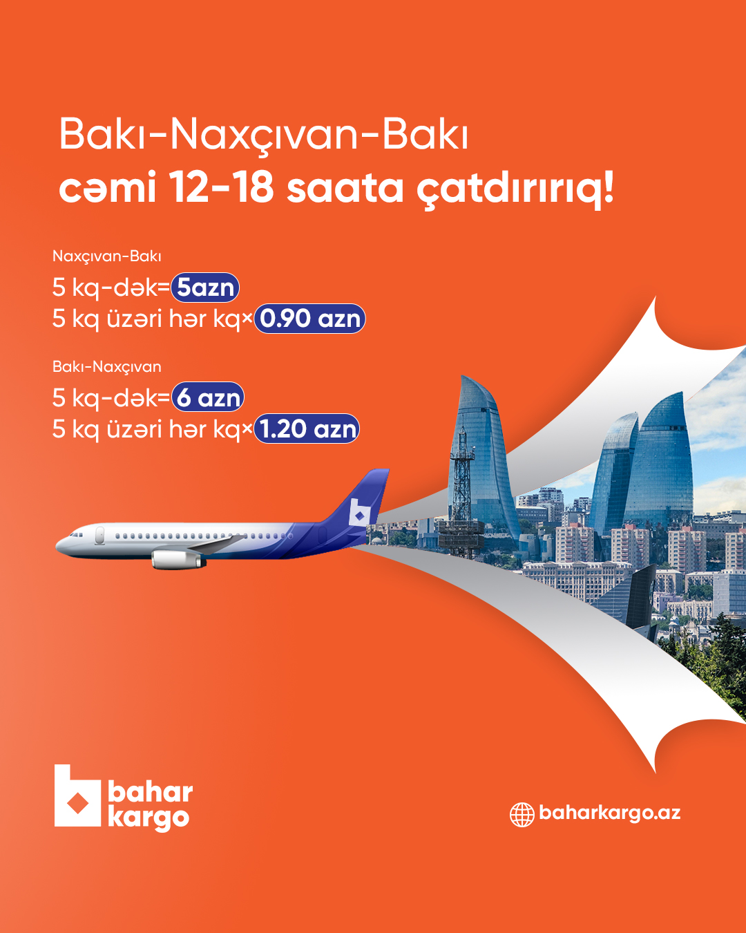 0.251 kq’dan 15 kq-a qədər - 1.945 $ / 3.30 AZN